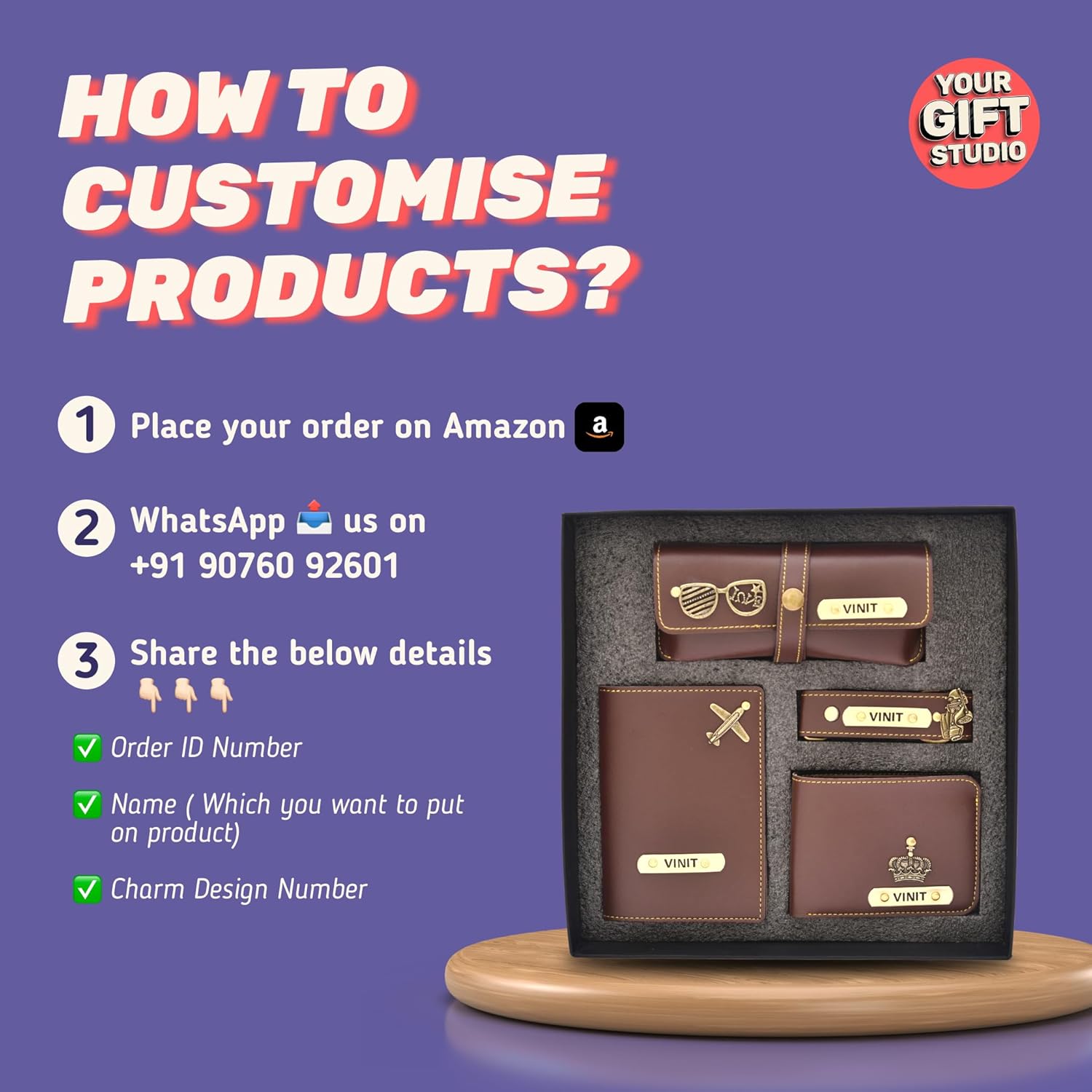 Your Gift Studio Personalized Classy Leather Travel Pouch | Customized Multipurpose Pouch with Name & Charm (Black)