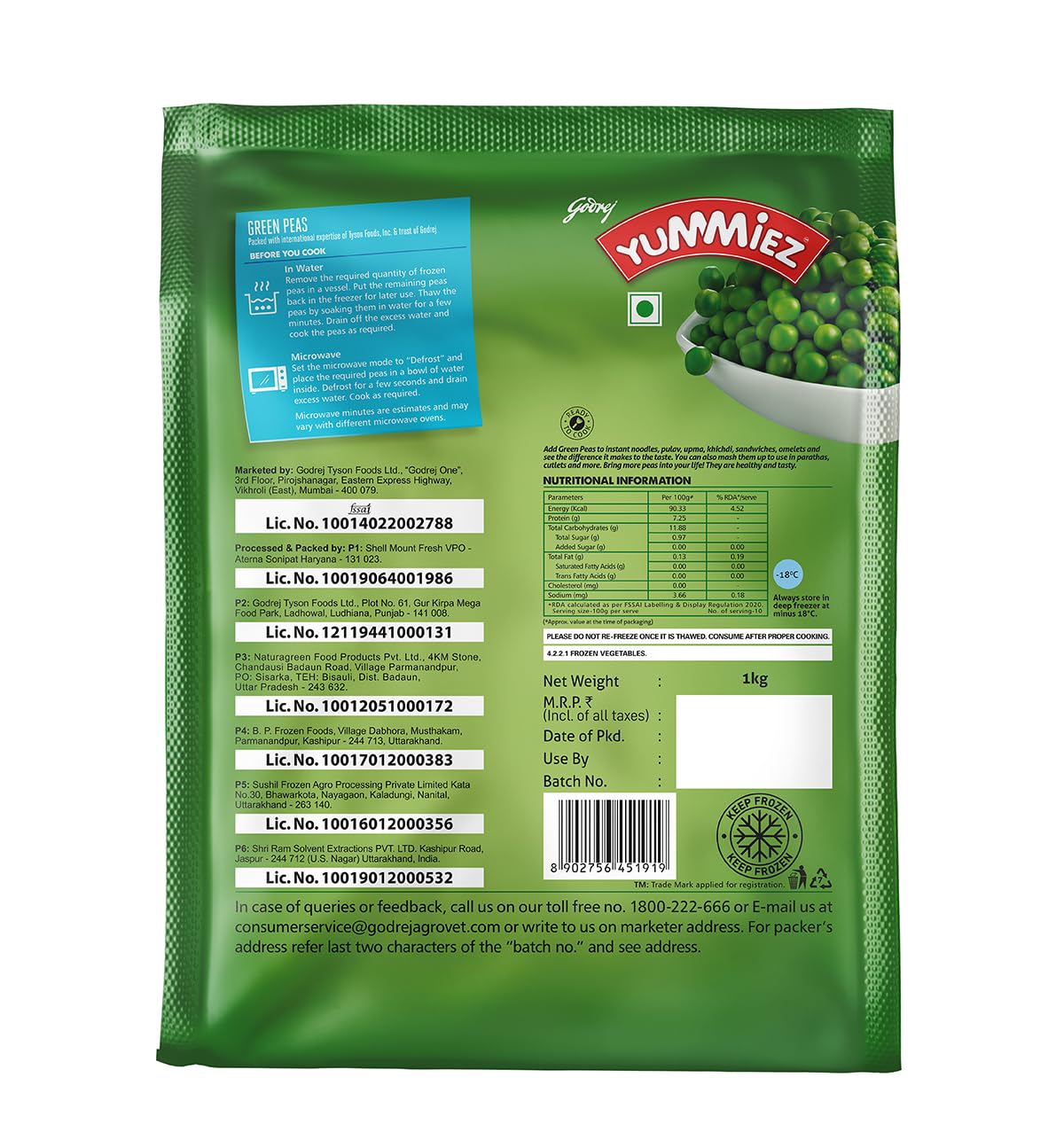 Yummiez Godrej Frozen Green Peas,1 Kg