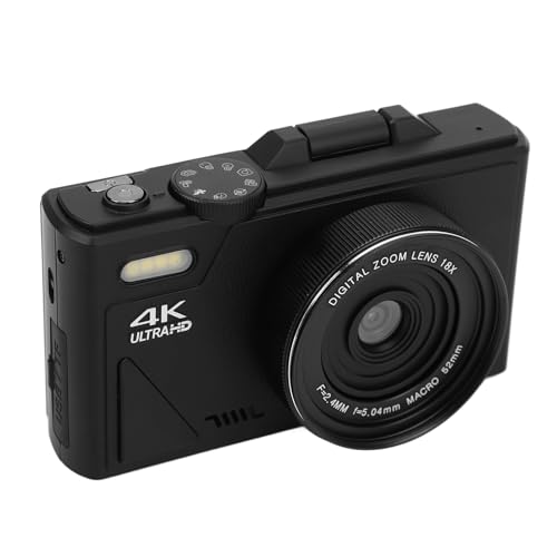 Yunir 4K 64MP Digital Camera, UHD 18X Zoom Autofocus Compact Digital Camera with 3 Inch Flip Screen, Video Vlogging Camera, One Click Point and Shoot Travel Camera for Beginners (Black)
