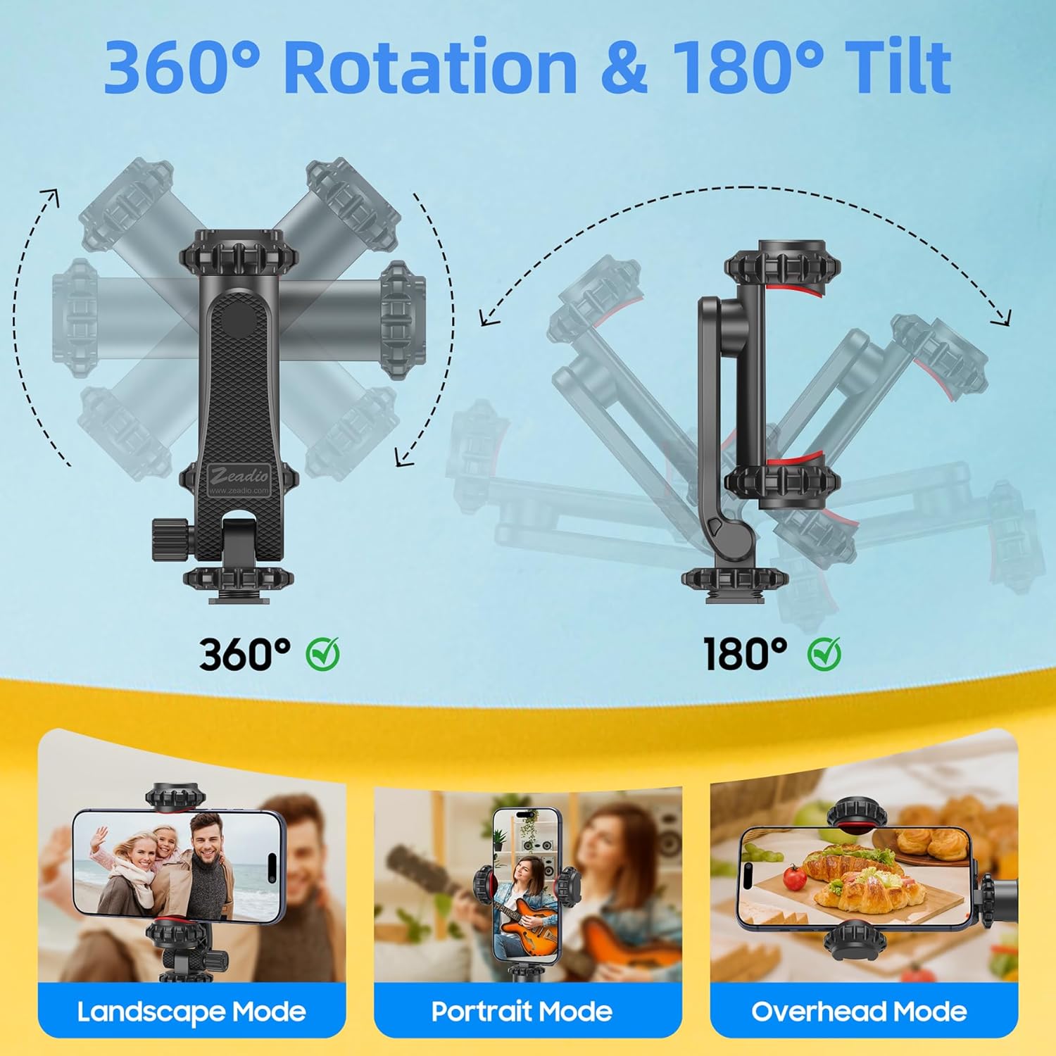 Zeadio Camera Smartphone Mount Holder Adapter, Cold Shoe Cell Phone Tripod Holder Selfie Stick Monopod Adjustable Clamp, for Canon Nikon DSLR iPhone Samsung Photography