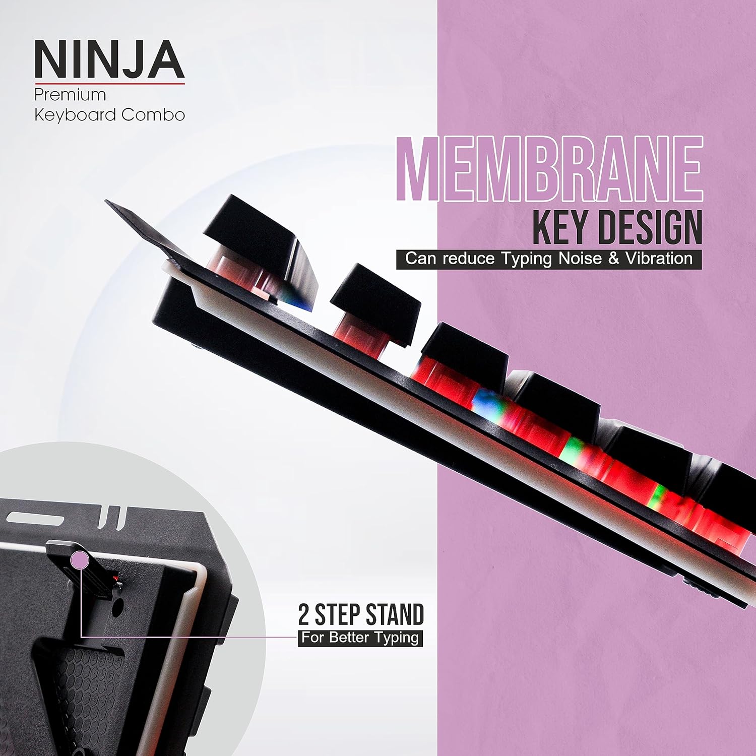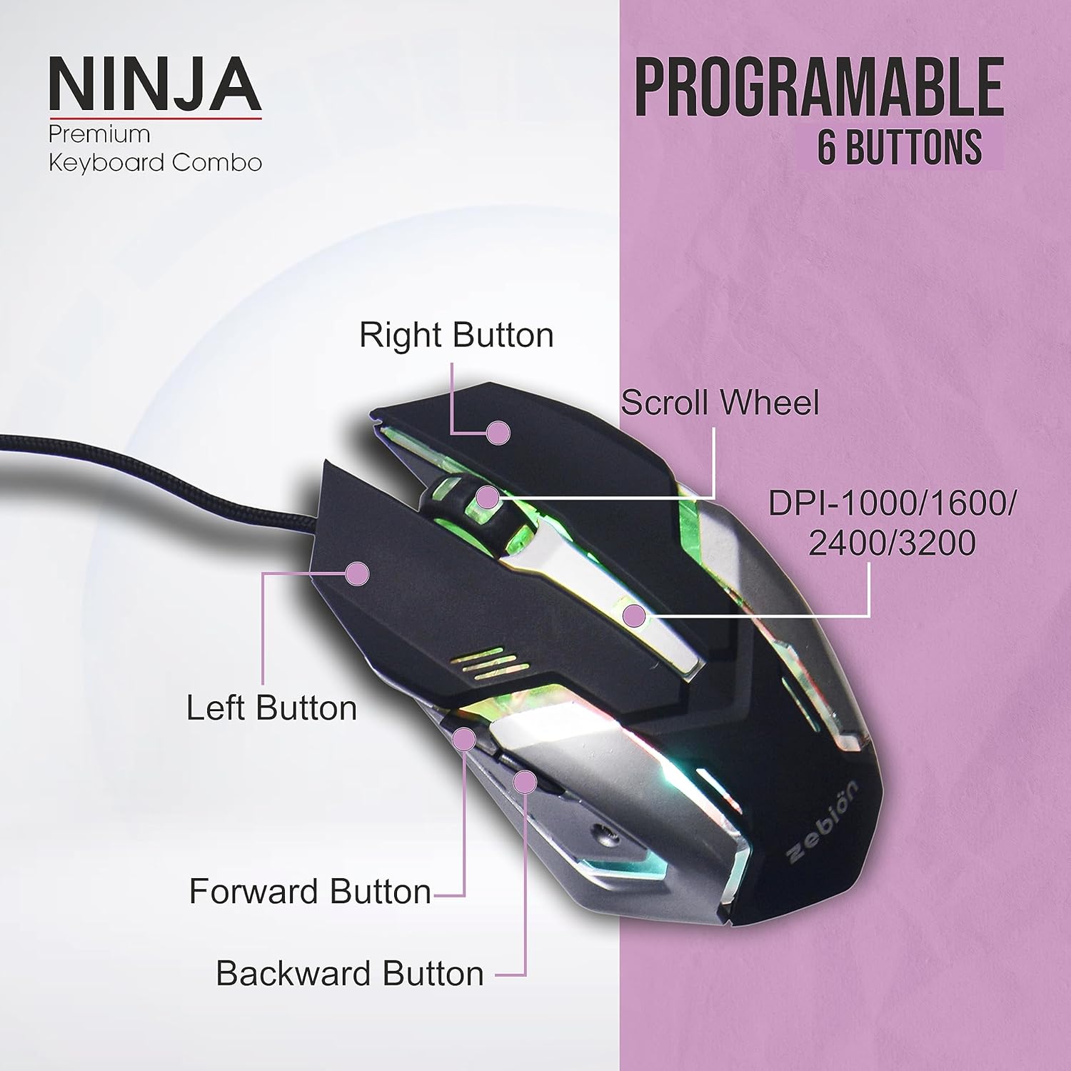 Zebion Ninja Gaming Keyboard and Mouse Combo,Braided Cable,Durable Metal Body,Multimedia Keys and Gaming Mouse with 6 Buttons, Multi-Color LED Lights, High-Resolution Sensor with 3200 DPI (Black)