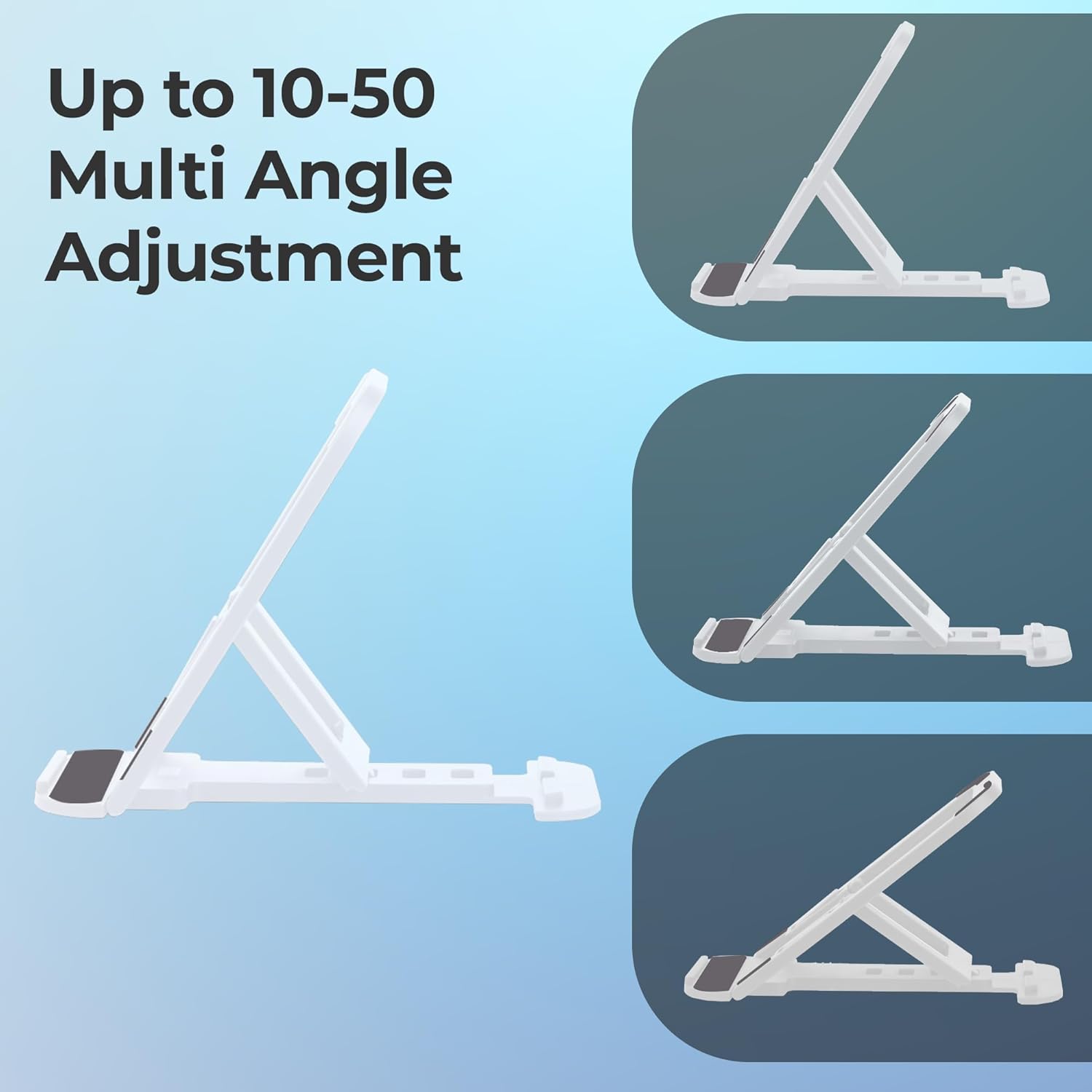 ZEBRONICS MS80 Mobile Holder with Adjustable Height, 10°- 50° Multiangle Adjustment, Foldable Design, Anti Skid Base, Matte Finish, Lightweight and 4 Adjustable Levels (White)