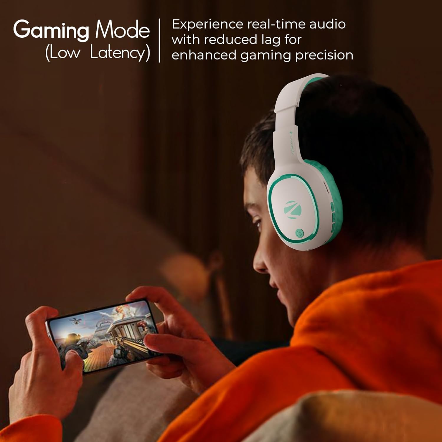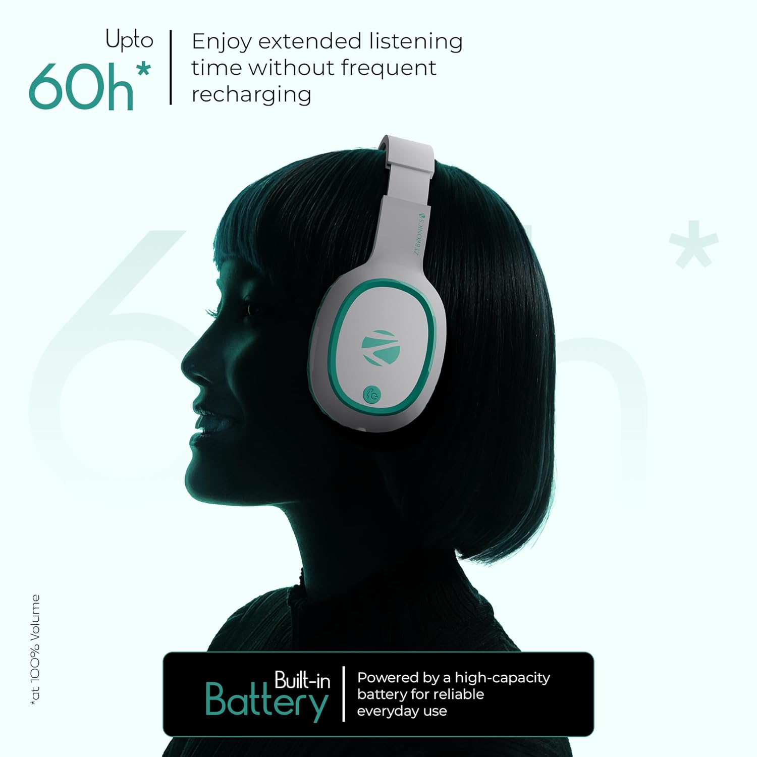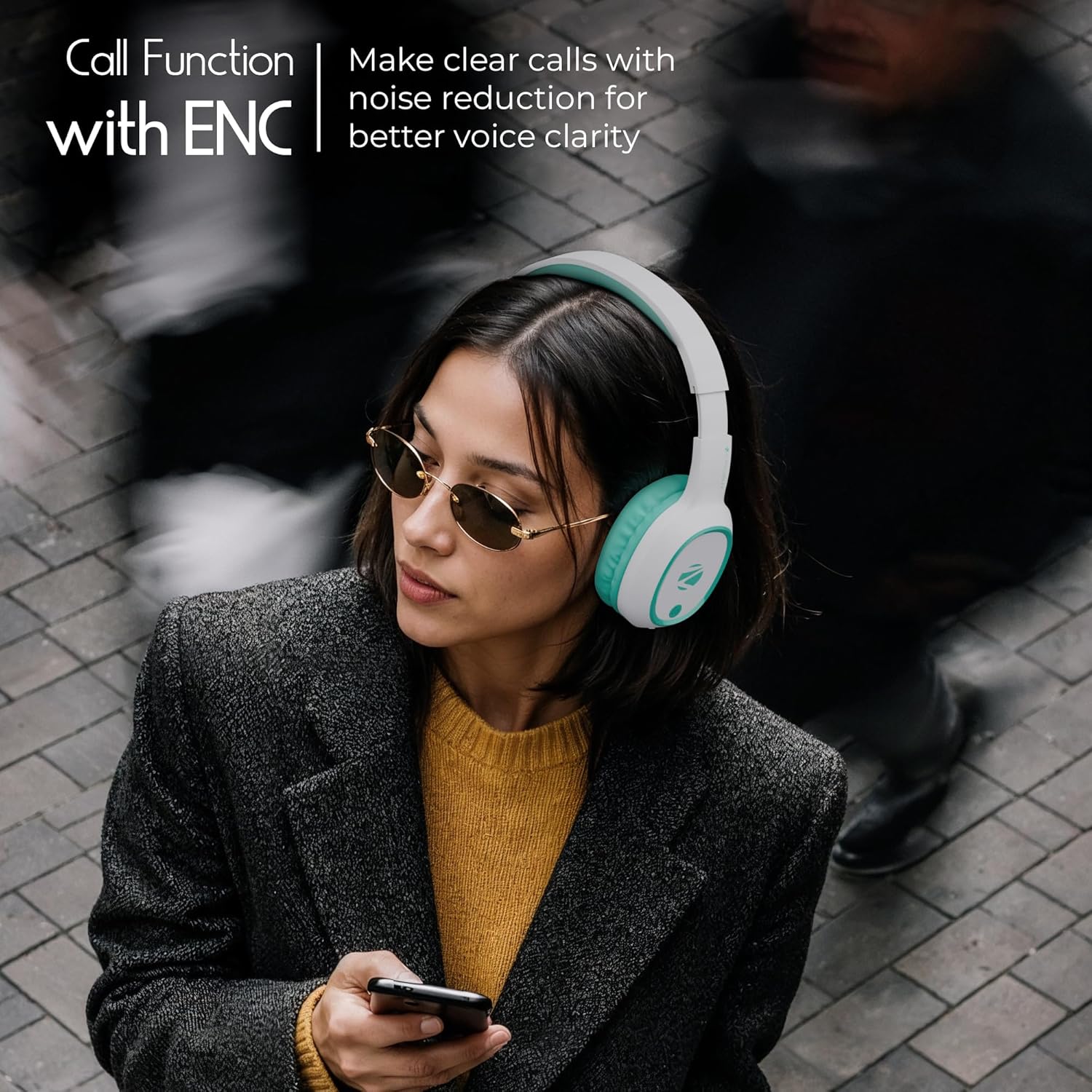 ZEBRONICS Thunder (2026 Upgrade) Wireless Headphones, BT v6.0, True 60 hrs Playback, 40mm Drivers, ENC, Gaming Mode, Dual Pairing, AUX & microSD, Rapid Charging, Call Function (Sea Green)