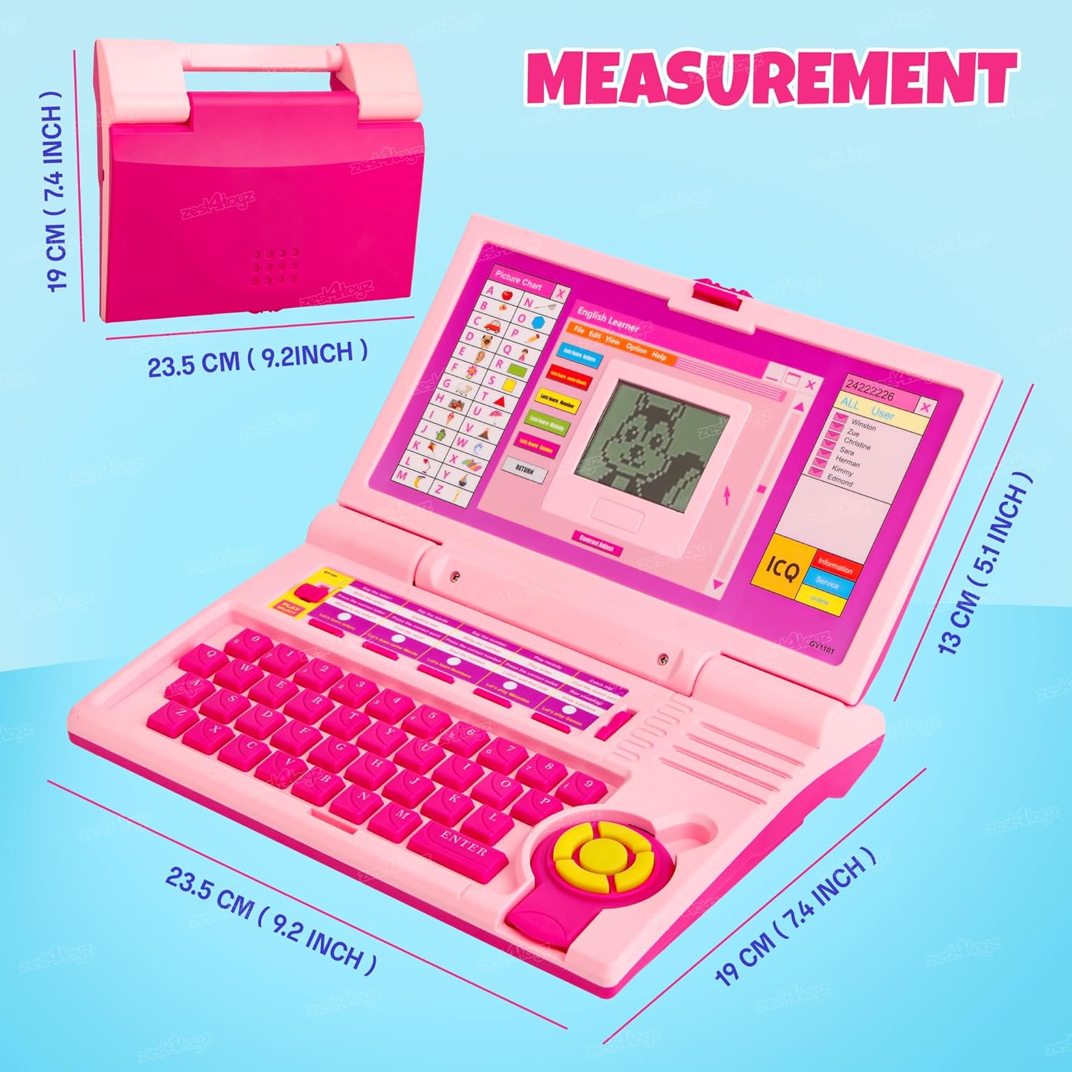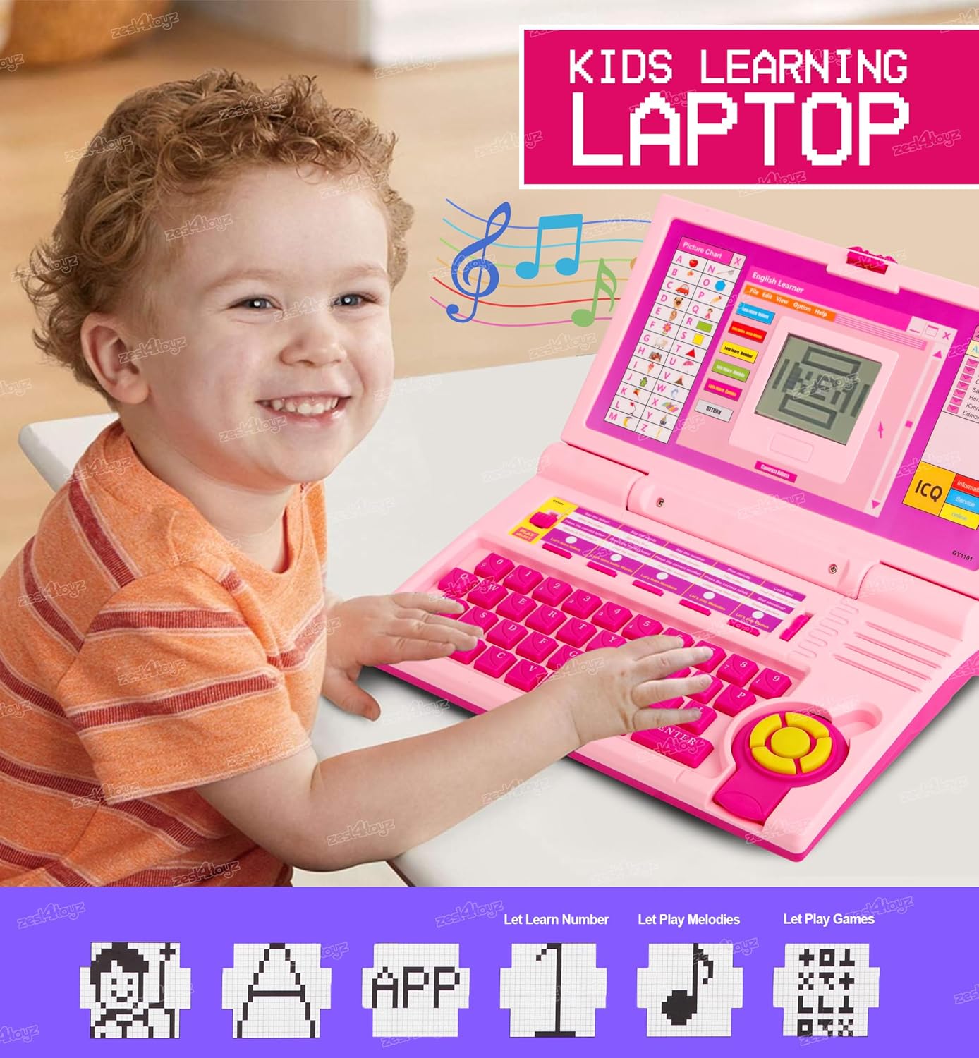 Zest 4 Toyz Educational Laptop for Kids Toy Computer Fun Activity Learning Toy Laptop Alphabet, Letter, Words, Games, Mathematics, Music, Logic Memory Tool Educational Toys for 3 Year Old – Pink