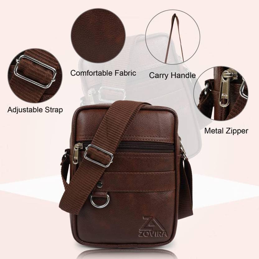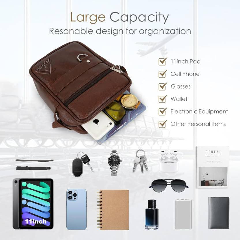 ZOVIRA Men’s Leather Sling Bag, 23x18x8 cm, Adjustable Strap, Multi-Compartment Crossbody Messenger Bag for Travel and College